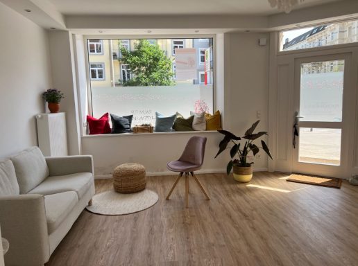 Neurodivergenz: Die Praxis liegt zwar an einer stark befahrenen Straße, der Raum befindet sich jedoch im hinteren Teil, sodass es dort deutlich leiser ist. Komplette Stille kann jedoch nicht garantiert werden, weil teils mehrere Therapeut*innen in verschiedenen Räumen der Praxisgemeinschaft anwesend sind. Die Beleuchtung ist durch Tageslicht gewährleistet, es kommt jedoch auch indirektes Licht zum Einsatz.